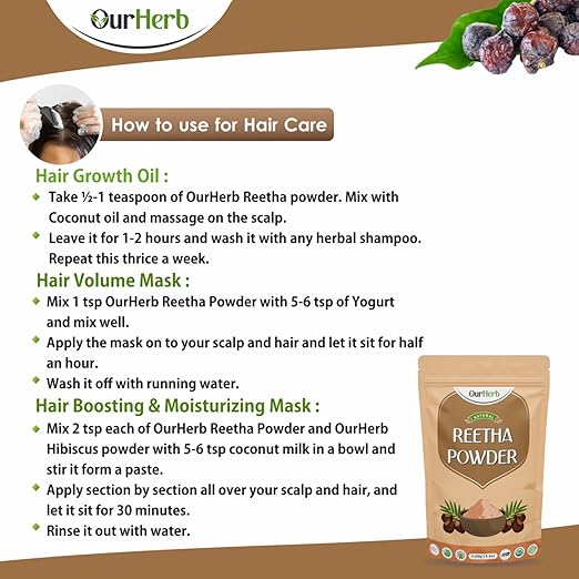 - ✅ TRIPLE FILTERED MICROFINE POWDER: OurHerb Reetha powder undergoes a triple filtration process to achieve very fine particles, making it beneficial for preparing hair packs.
