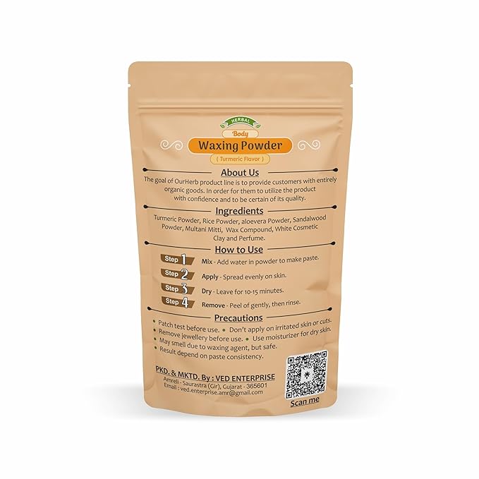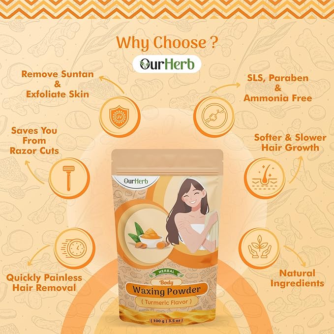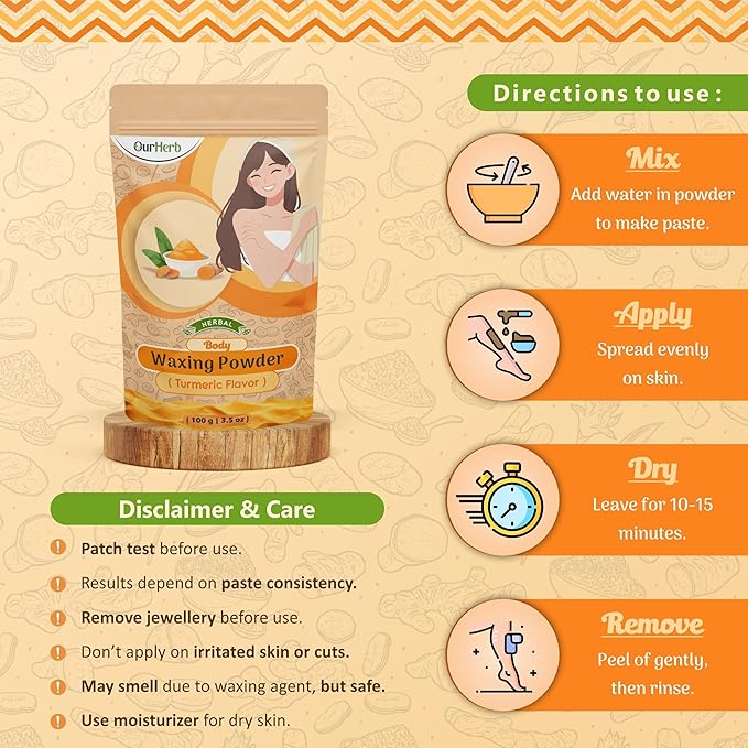 - ✅ 𝗣𝗮𝗰𝗸𝗮𝗴𝗲 𝗖𝗼𝗻𝘁𝗲𝗻𝘁𝘀: 1 x OurHerb Body Wax Powder – Turmeric Flavour 100g .