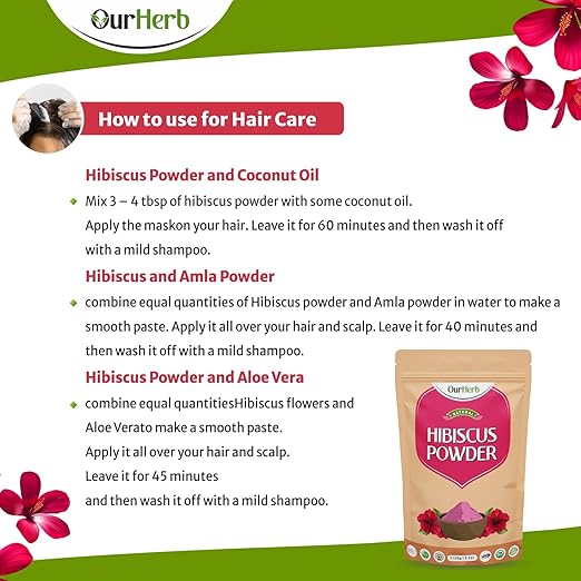 - ✅𝟏𝟎𝟎% 𝐏𝐮𝐫𝐞 𝐚𝐧𝐝 𝐎𝐫𝐠𝐚𝐧𝐢𝐜: OurHerb Hibiscus Flower Powder obtained by crushing the flowers of hibiscus plants organically grown in select Indian farms