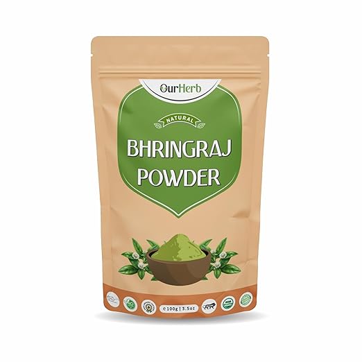 OurHerb Pure & Organic Bhringraj (Eclipta Prostrata) Powder for Natural Hair Care with Wooden Spoon