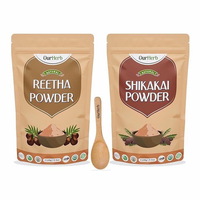 OurHerb Reetha + Shikakai Powder | For Strengthening, Conditioning & Nourishing Hair | Suitable for All Hair Types with Spoon Combo Pack - 200g (100g X 2)