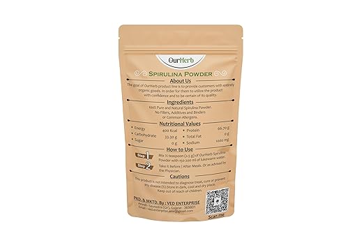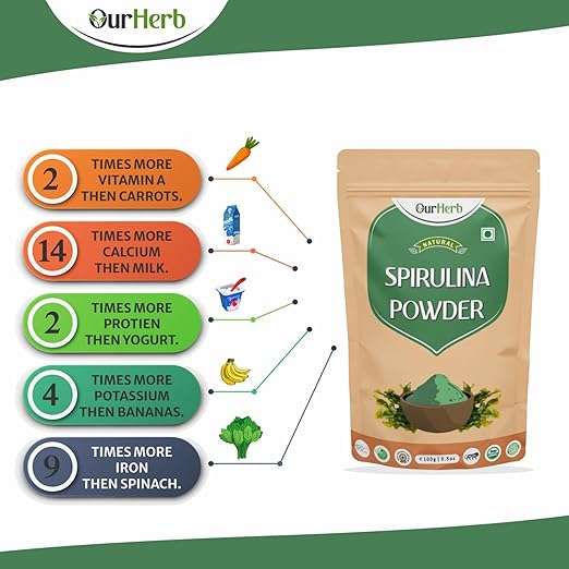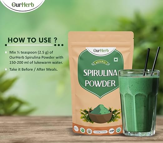 OurHerb Spirulina Powder | For Men & Women | Natural Superfood | Support Digestion & Skin health | Rich in Protein, Vitamins & Minerals | Boost Energy & Immunity.